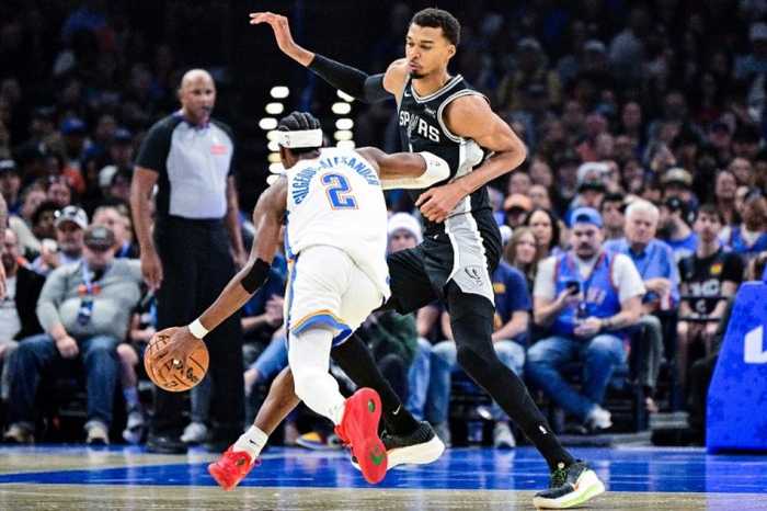 本赛季至今雷霆33胜7负,场均得121.4分,场均失108.4分。上场比赛,雷霆主场124-112战胜热火,球队迎来三连胜。亚历山大29分5篮板8助攻,霍姆格伦16分10篮板,杰伦·威廉姆斯18分4篮板4助攻,阿杰伊·米切尔16分4篮板,阿隆·维金斯和以赛亚·乔各有11分入账。本赛季两队已经交锋3次,雷霆全部输球。雷霆外线投射能力不足,特别是在亚历山大遭遇包夹的情况下,出现空位的多特、卡鲁索等人必须保证准星,才能给予球队有力的支持。再次遭遇马刺,雷霆期盼复仇。本场哈尔滕施泰因、尼古拉·托皮奇和托马斯·索伯将缺席。